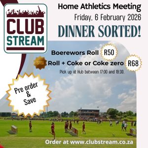Dinner sorted- Boerewors Roll or Combo – Home Athletics 6 February @Midstream College